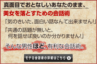 ただ、会話は相手がいてこそ成り立つものです。相手が嫌な事・相手に好まれる事が分かれば、今以上に女性との会話が楽しくなります。もっと、会話を楽しくしたいなら、次のページも価値があるので読んでみて下さい。